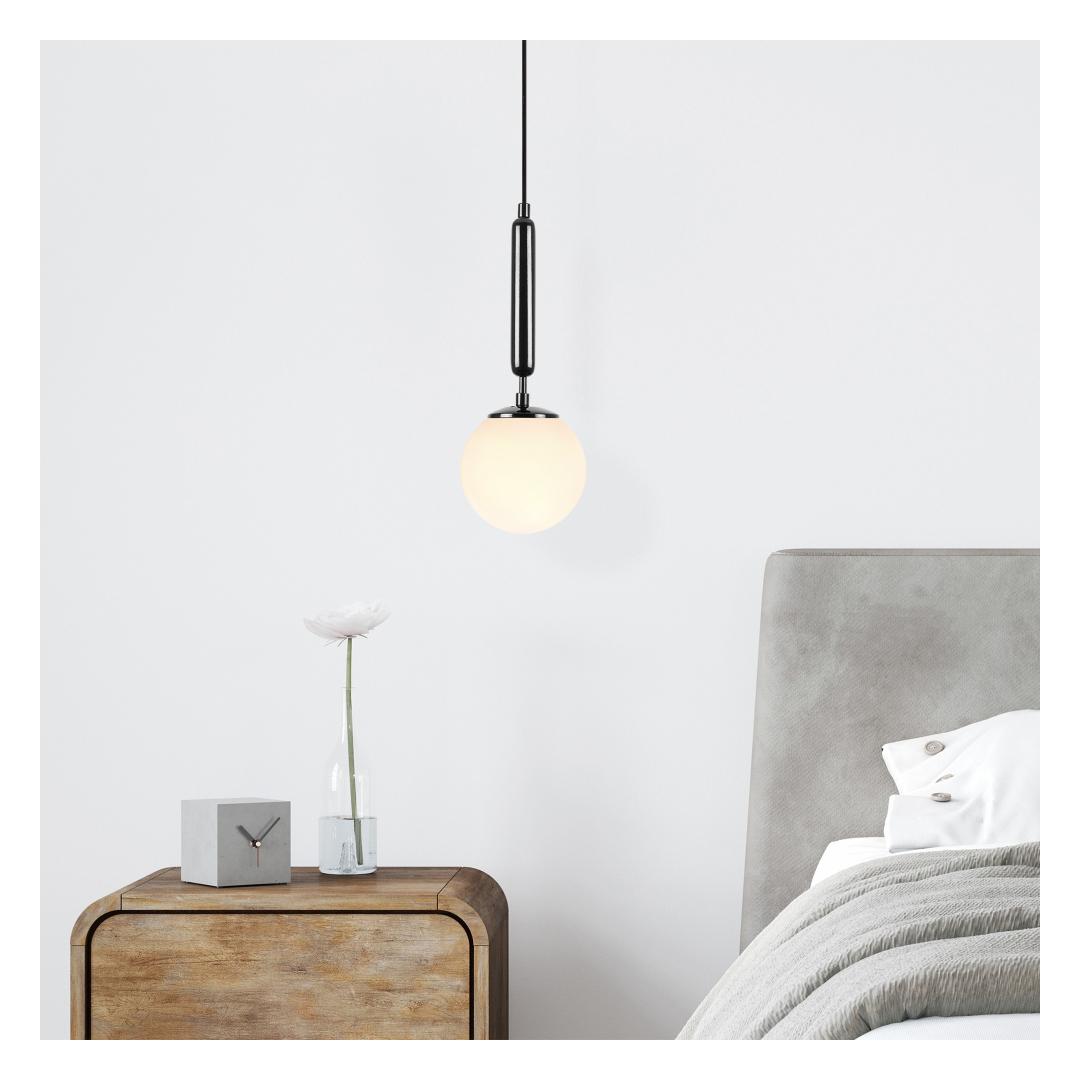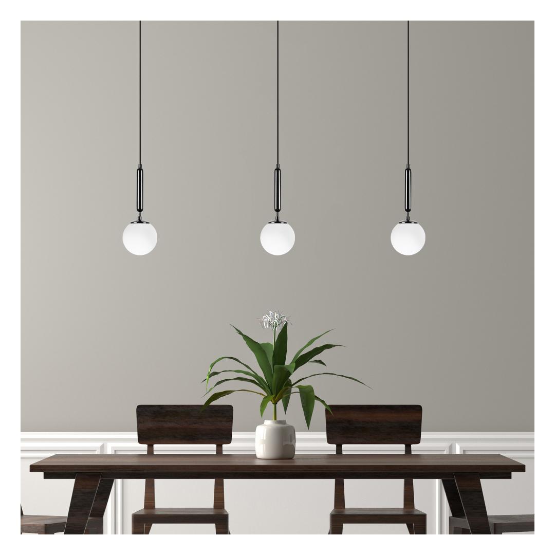 Elevate the ambiance of any room with our Black-White Chandelier, a stunning piece that combines elegance and modernity. With its sleek metal body and glass cap, this chandelier exudes a sense of sophistication that will instantly upgrade your space.