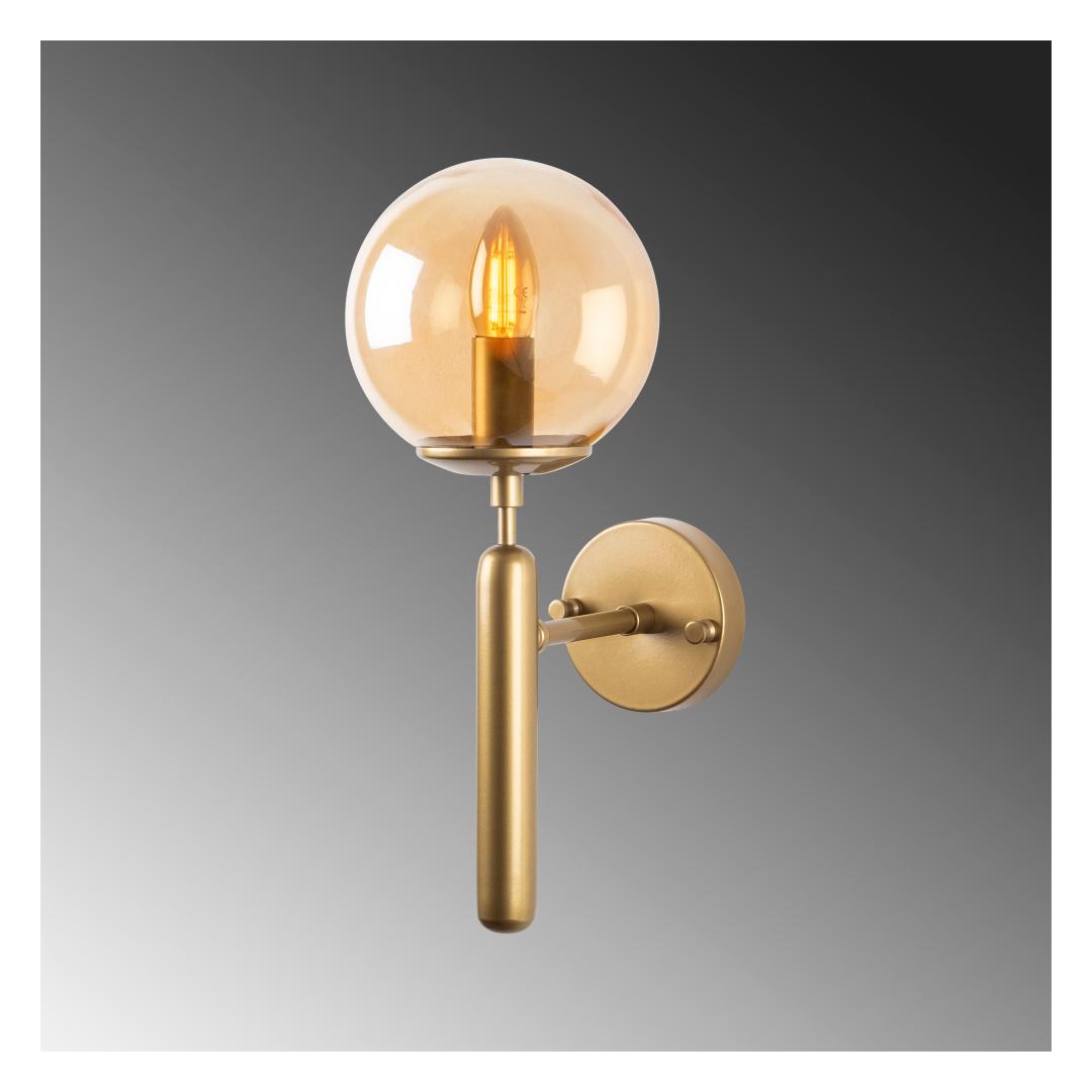 Enhance the ambiance of your living space with our stunning Gold Wall Lamp. Crafted with a metal body, this lamp exudes elegance and sophistication, adding a touch of glamour to any room. Its captivating design features a glass cap that beautifully diffuses the light, creating a warm and inviting atmosphere.