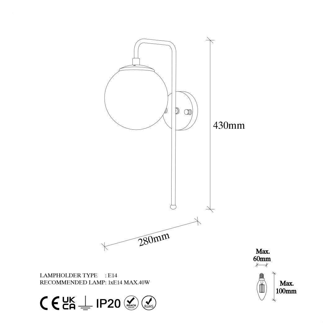 - Max. Bulb Size: Diameter: 6 cm, Height: 9 cm