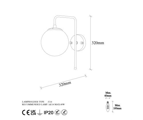 - Max. bulb size: Diameter: 6 cm, Height: 9 cm (bulb not included)