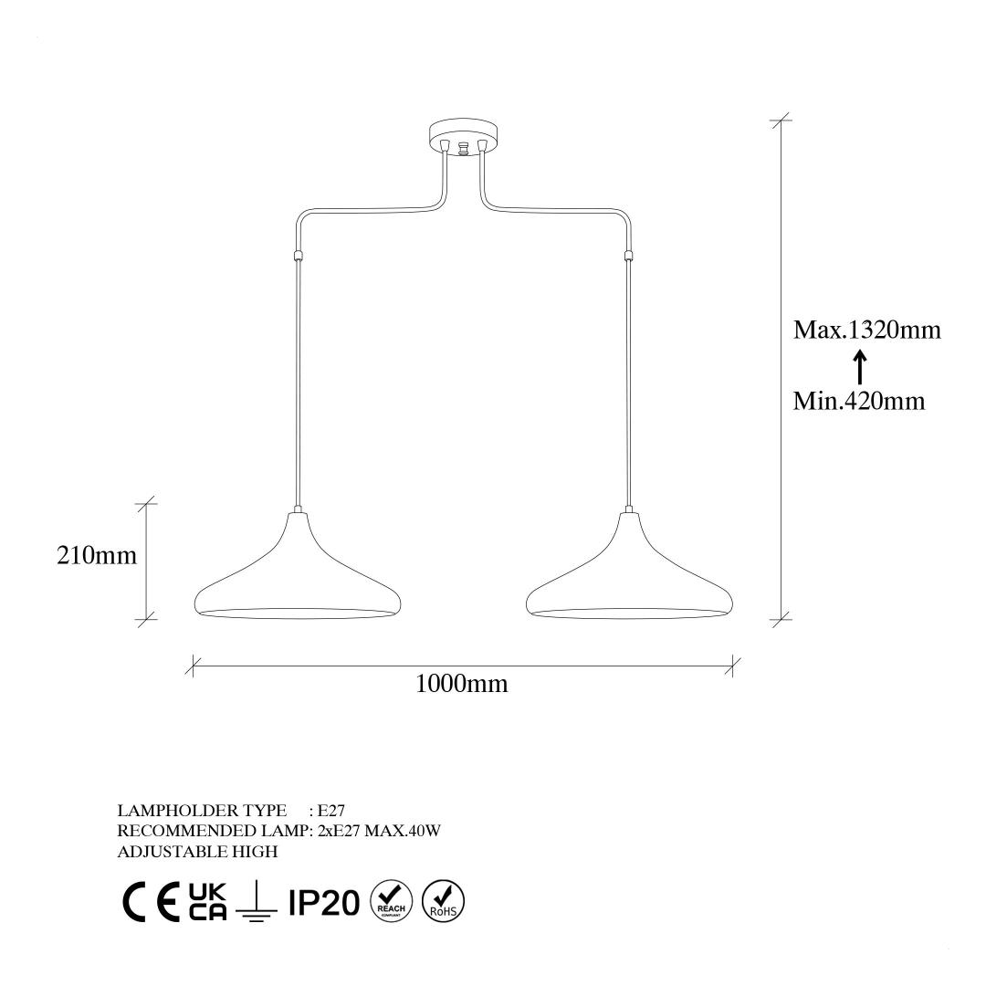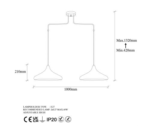 - Socket Type: 2 x E27 Max 40 W