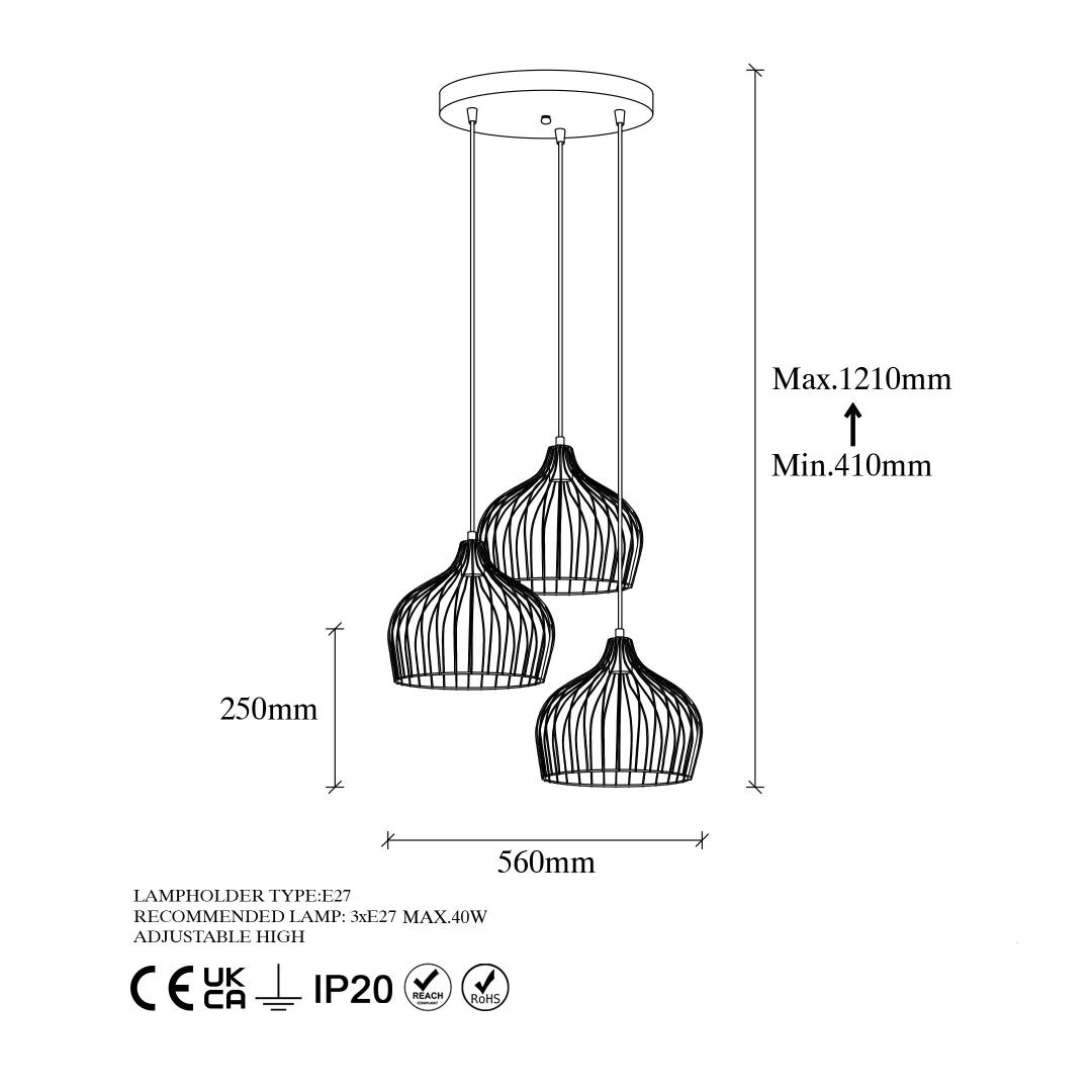 - Socket type: 3 x E27 max 40 W