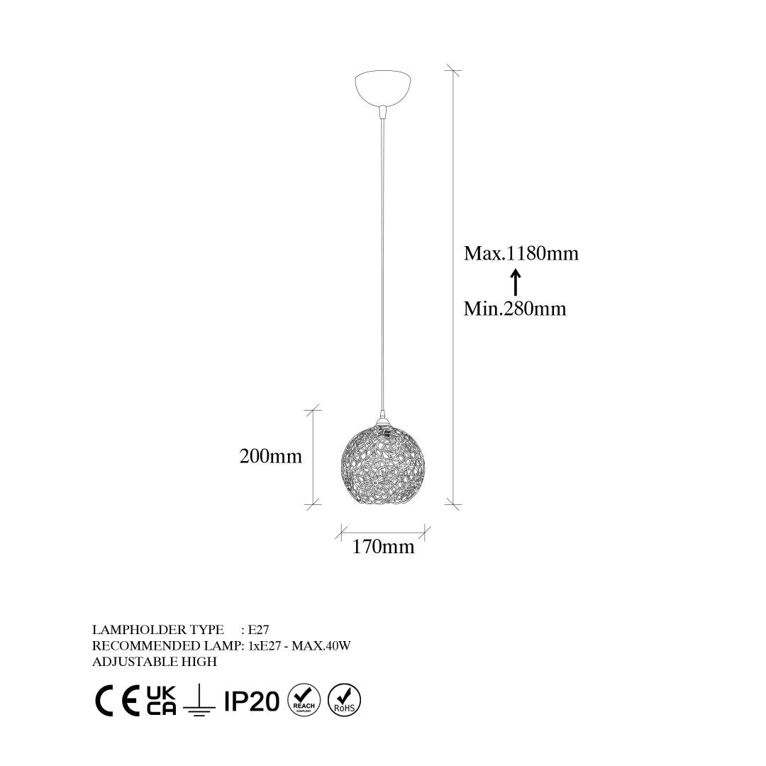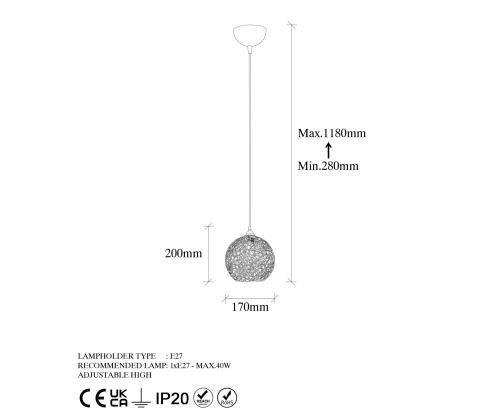 Crafted with a sturdy metal body, this chandelier exudes durability and strength. The metal cap adds a touch of sophistication, while its 17 cm diameter and height make it a standout feature in any room. The adjustable height feature allows you to customize the lighting to suit your needs, ensuring a perfect fit for any space.