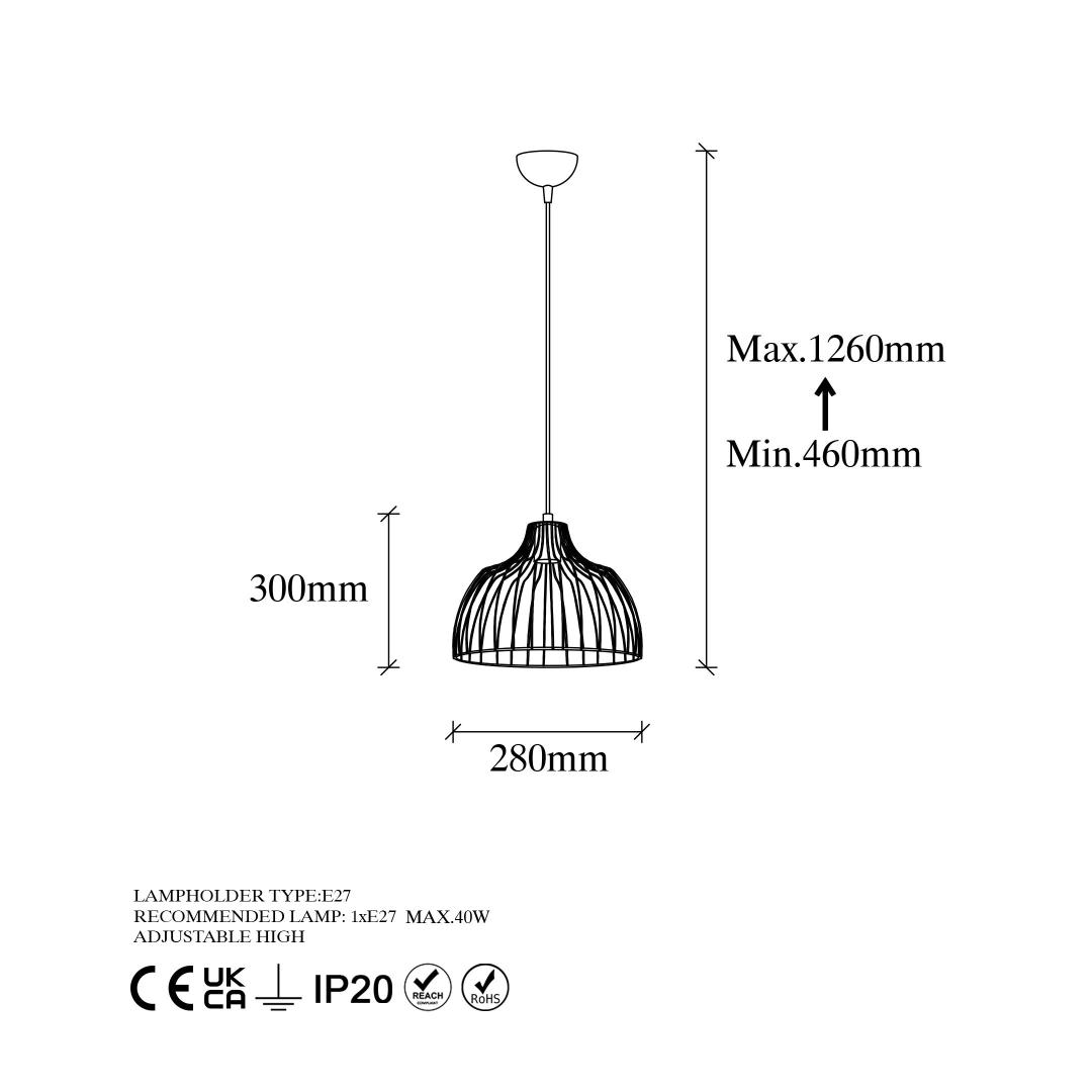 - Socket type: E27, max 40W