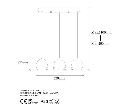 - Socket type: 3 x E27 Max 40 W