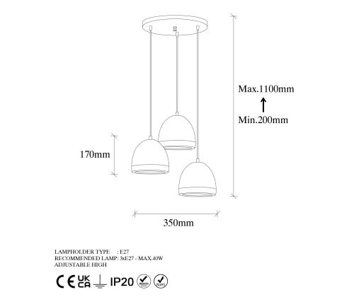 - Socket type: 3 x E27 Max 40 W for ample lighting