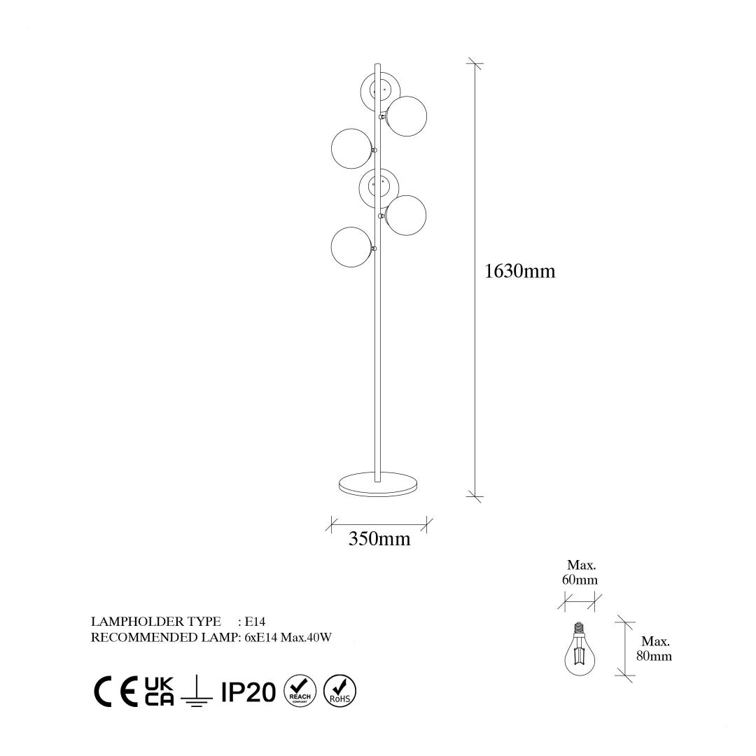 - Socket Type: 6 x E14 Max 40 W