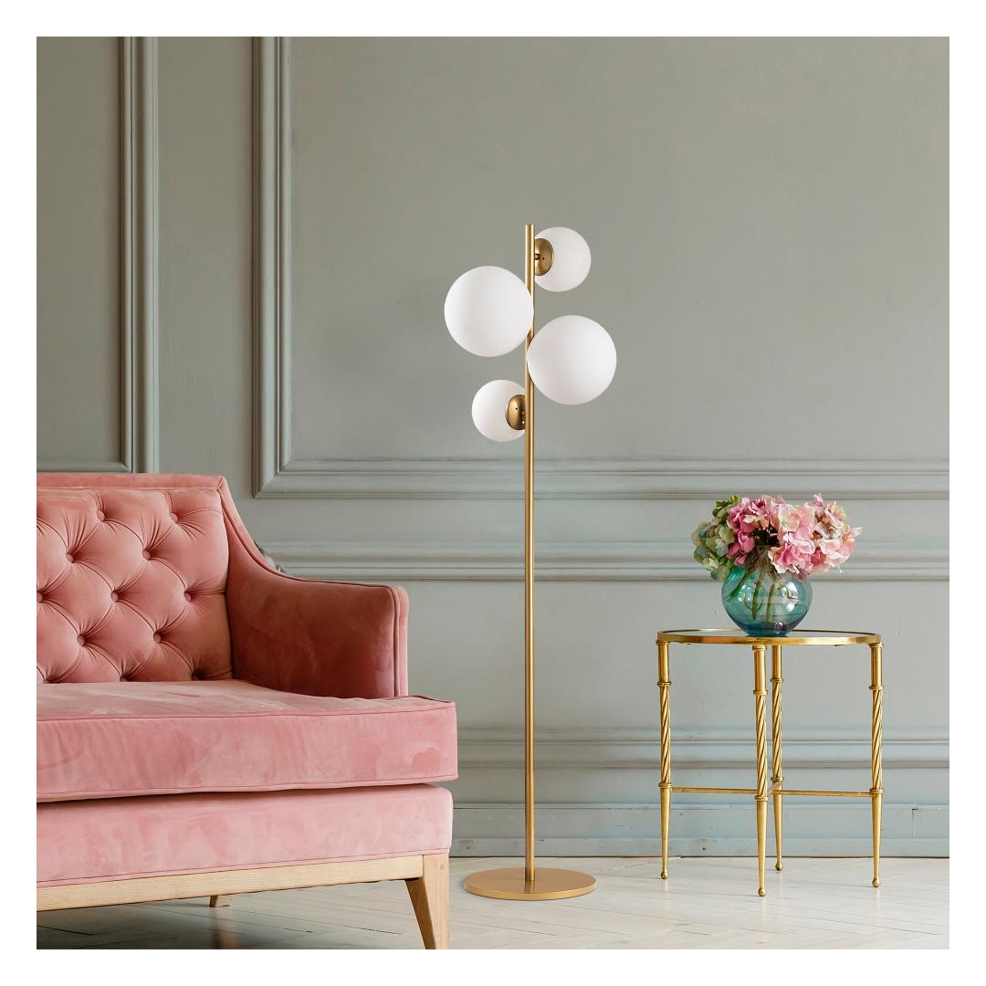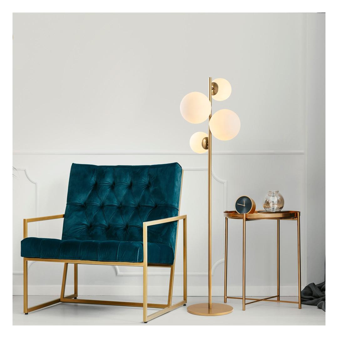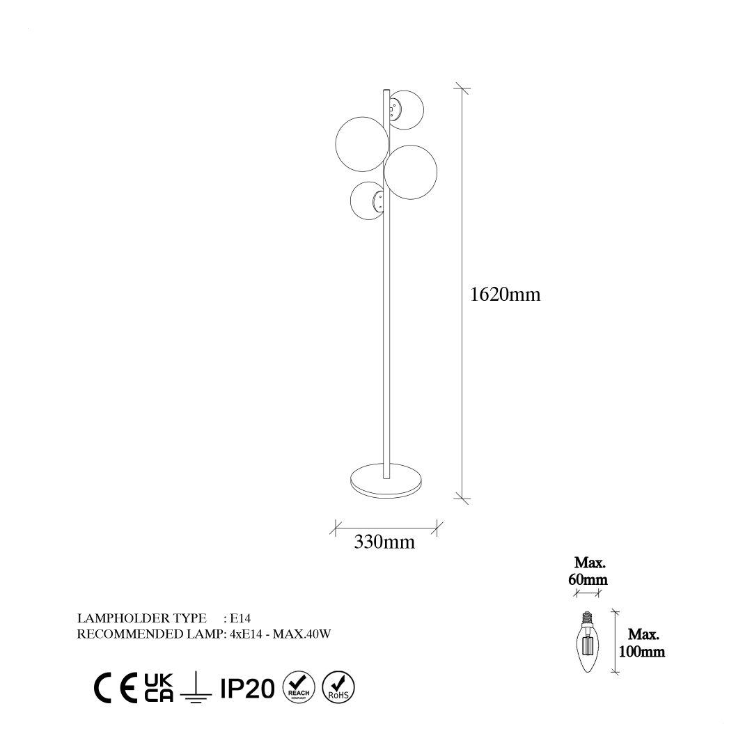 Introducing our stunning floor lamp, designed to add a touch of sophistication and charm to any room. With its sleek metal body and exquisite glass cap, this lamp is a true work of art.