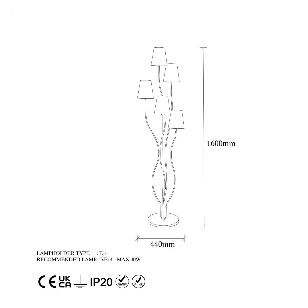 - Socket type: 5 x E14 Max 40 W, allowing for customizable lighting options