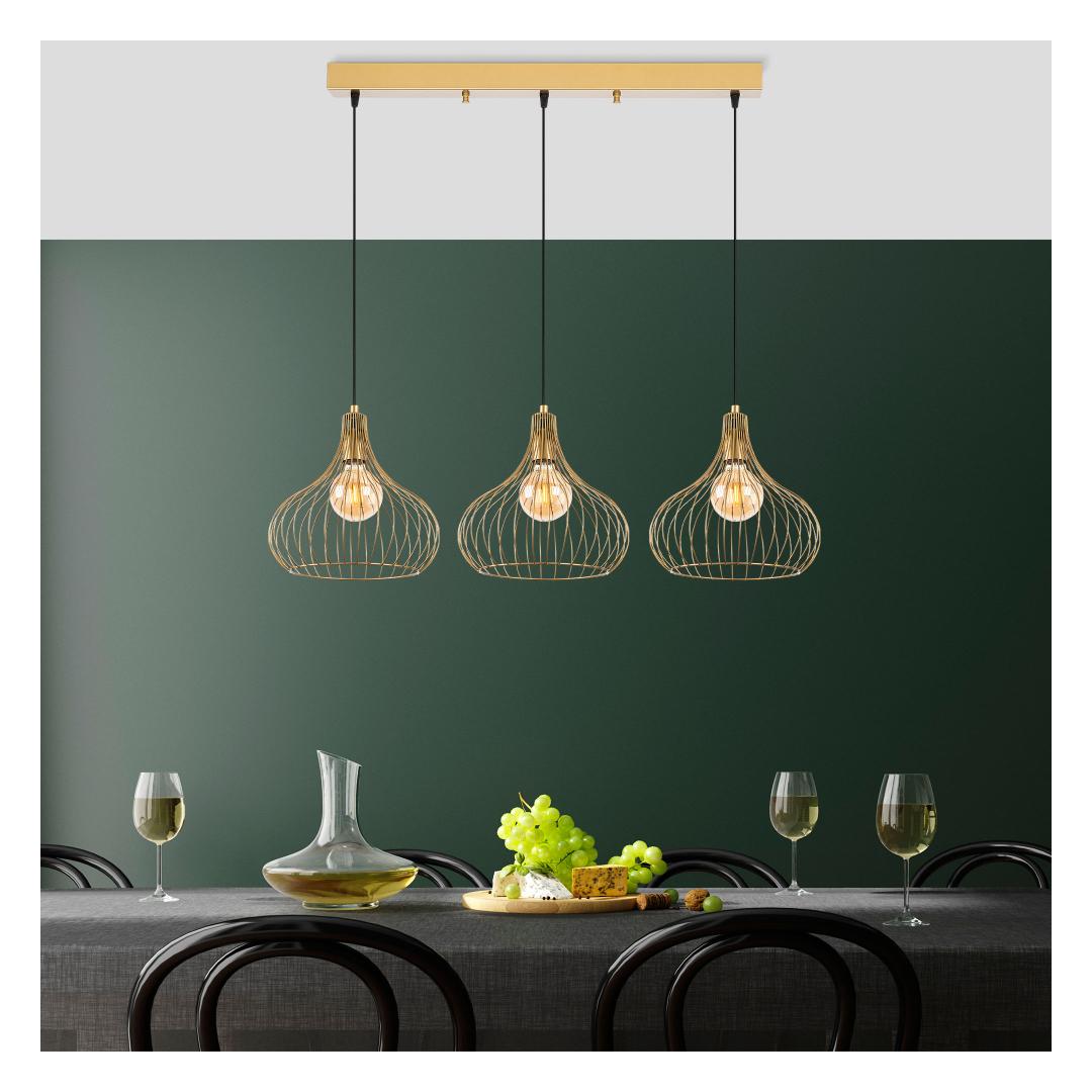The chandelier features a metal body with a sleek gold finish, giving it a luxurious and modern look that will elevate your home decor. The adjustable height allows you to customize the lighting to suit your space, while the solid color design adds a touch of novelty to the room.
