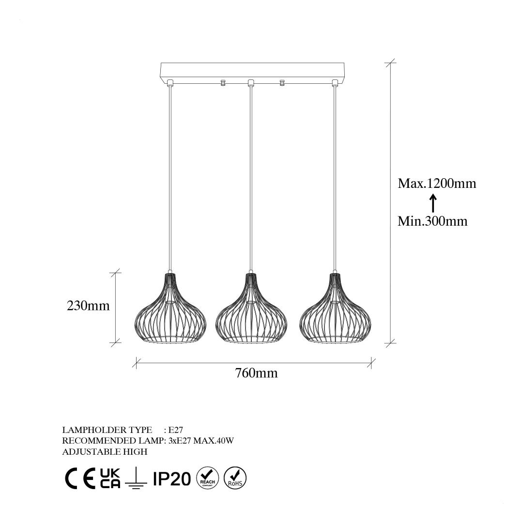 Whether you're hosting a dinner party or simply relaxing at home, this chandelier will create a warm and inviting ambiance that will make you never want to leave. The soft, warm glow of the three E27 bulbs (max 40W) will illuminate your space beautifully, while the sturdy base plate ensures stability and safety.