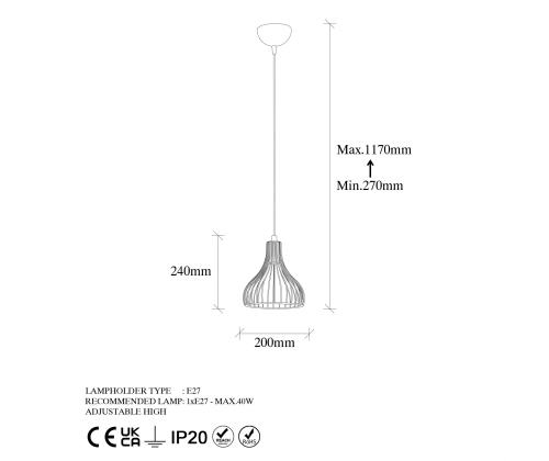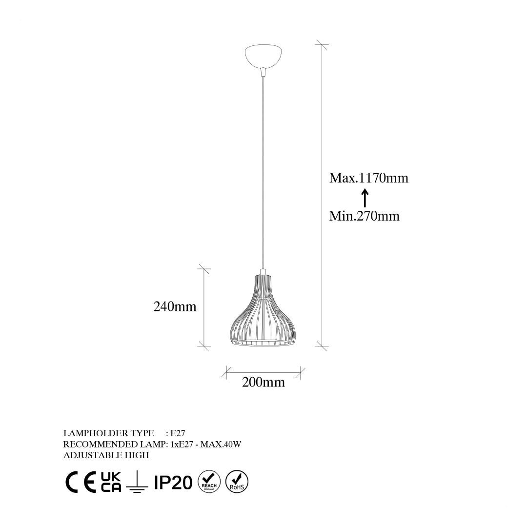 - Socket type: E27, max 40W