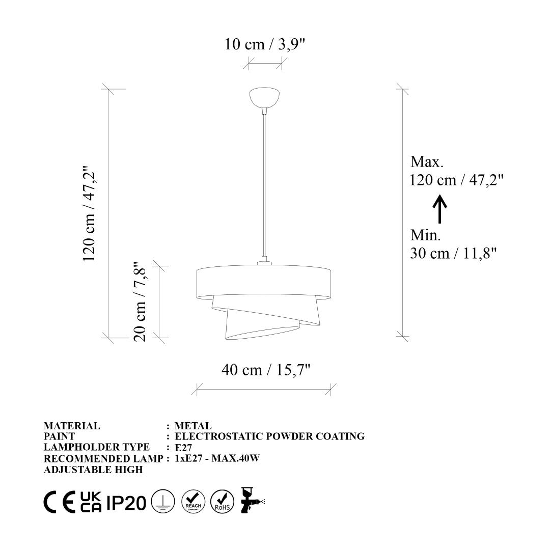 - Socket Type: 1 x E 27 Max 40 W