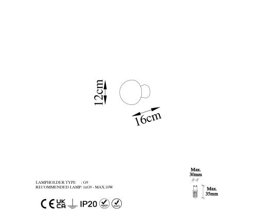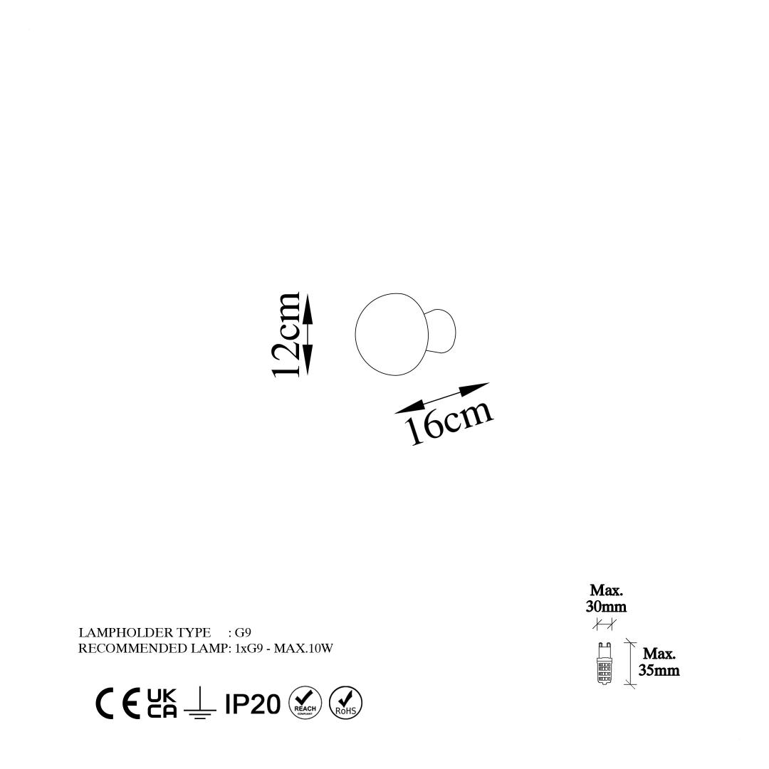 With a diameter of 12 cm and a height of 16 cm, this wall lamp is the perfect size for any space. The base plate has a diameter of 10 cm and a height of 3 cm, making it easy to install on any wall. The IP20 rating ensures that this lamp is safe for use in any indoor space.