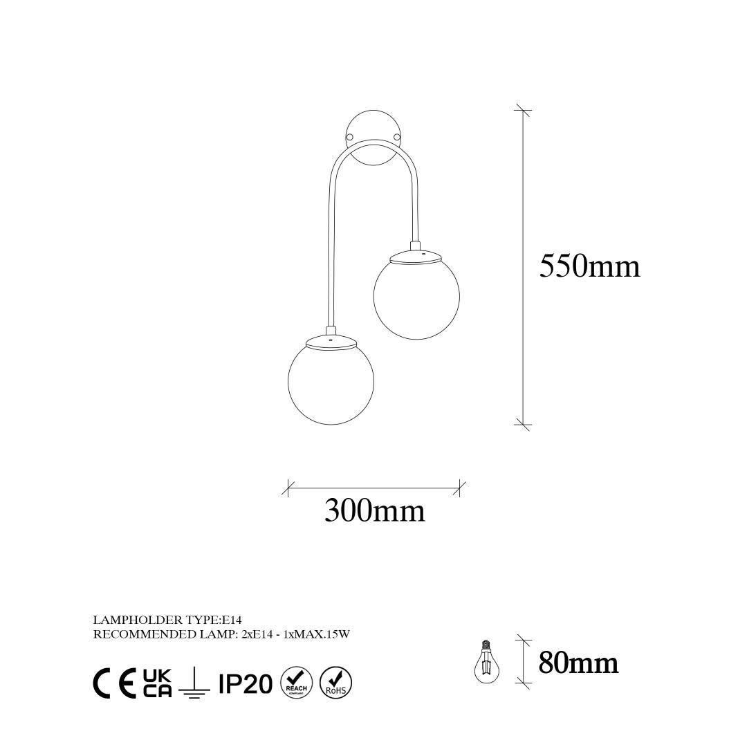 - Socket type: 2 x E14 Max 15 W for easy installation
