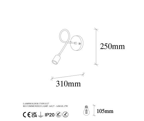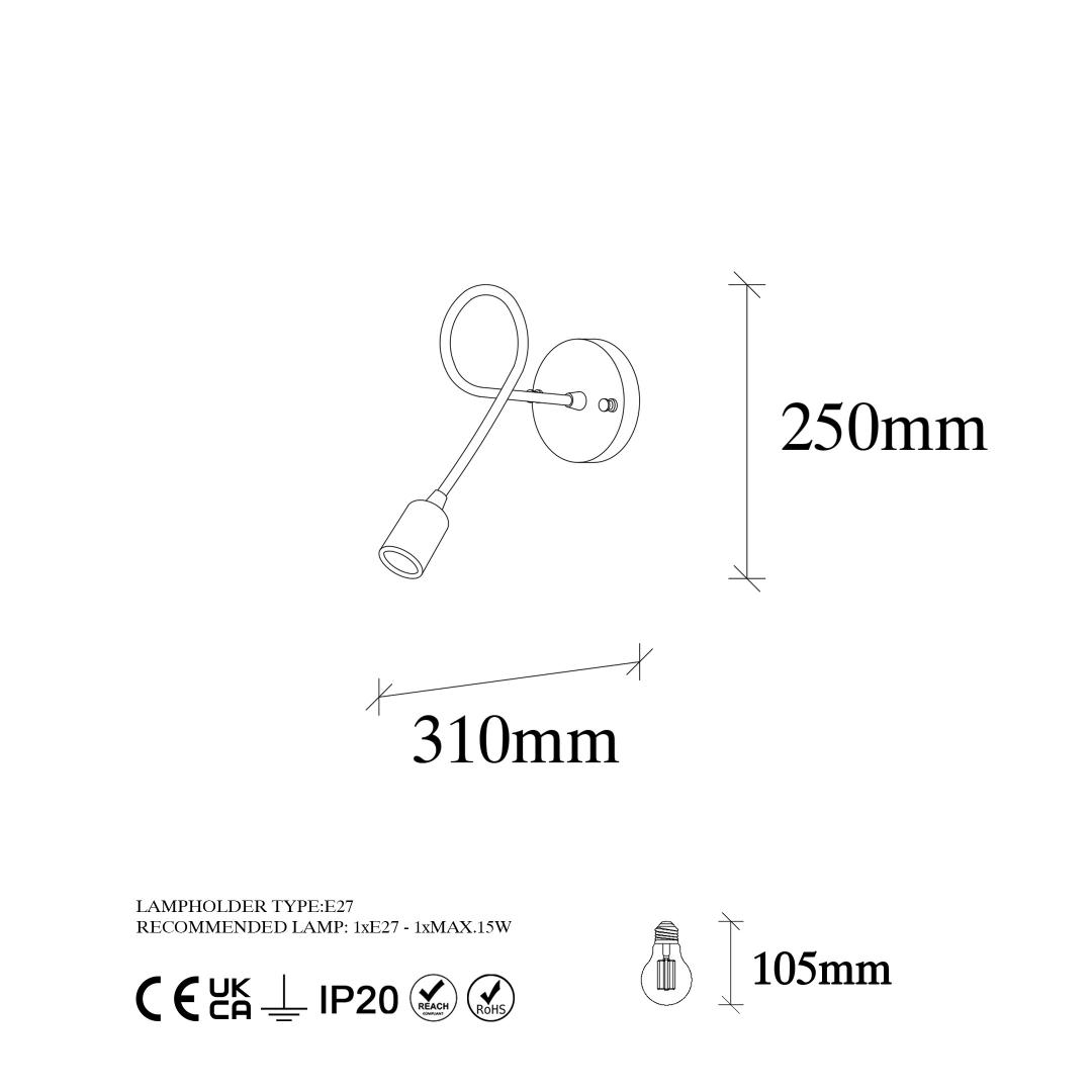 Featuring a metal base plate, this lamp offers stability and ensures a secure installation on any wall. Its compact size of 12 x 31 cm and a total height of 25 cm make it ideal for smaller spaces, while still providing ample lighting to brighten up your surroundings.