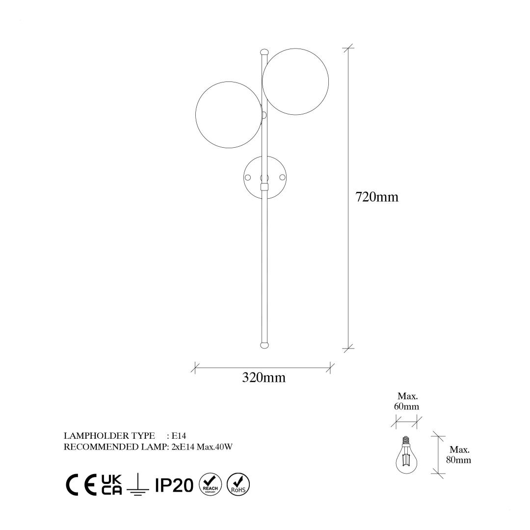 - Socket type: 2 x E14 Max 40 W