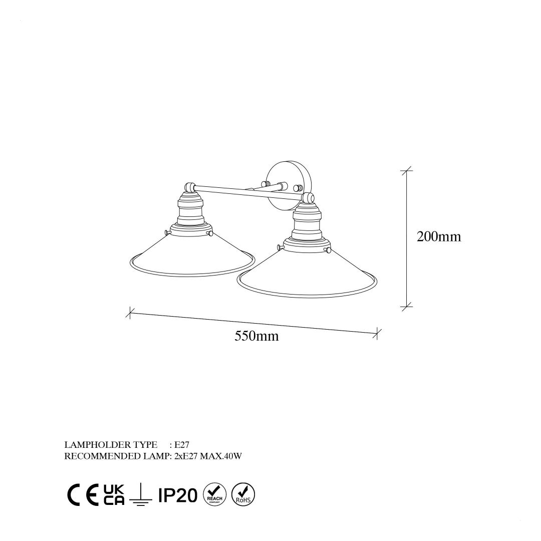- Socket Type: 2 x E27 Max 40 W