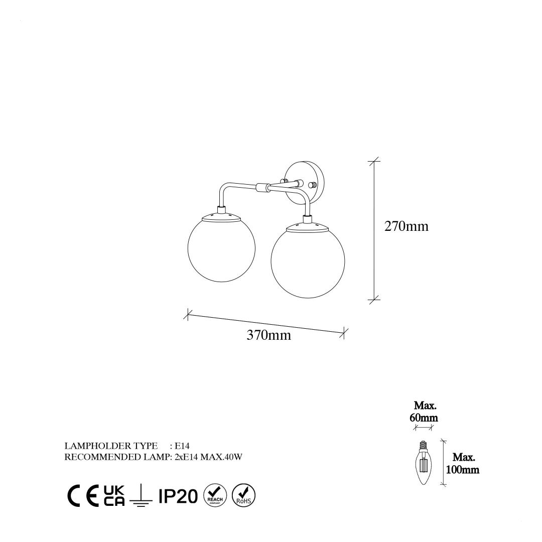 - Socket Type: 2 x E14 Max 40 W