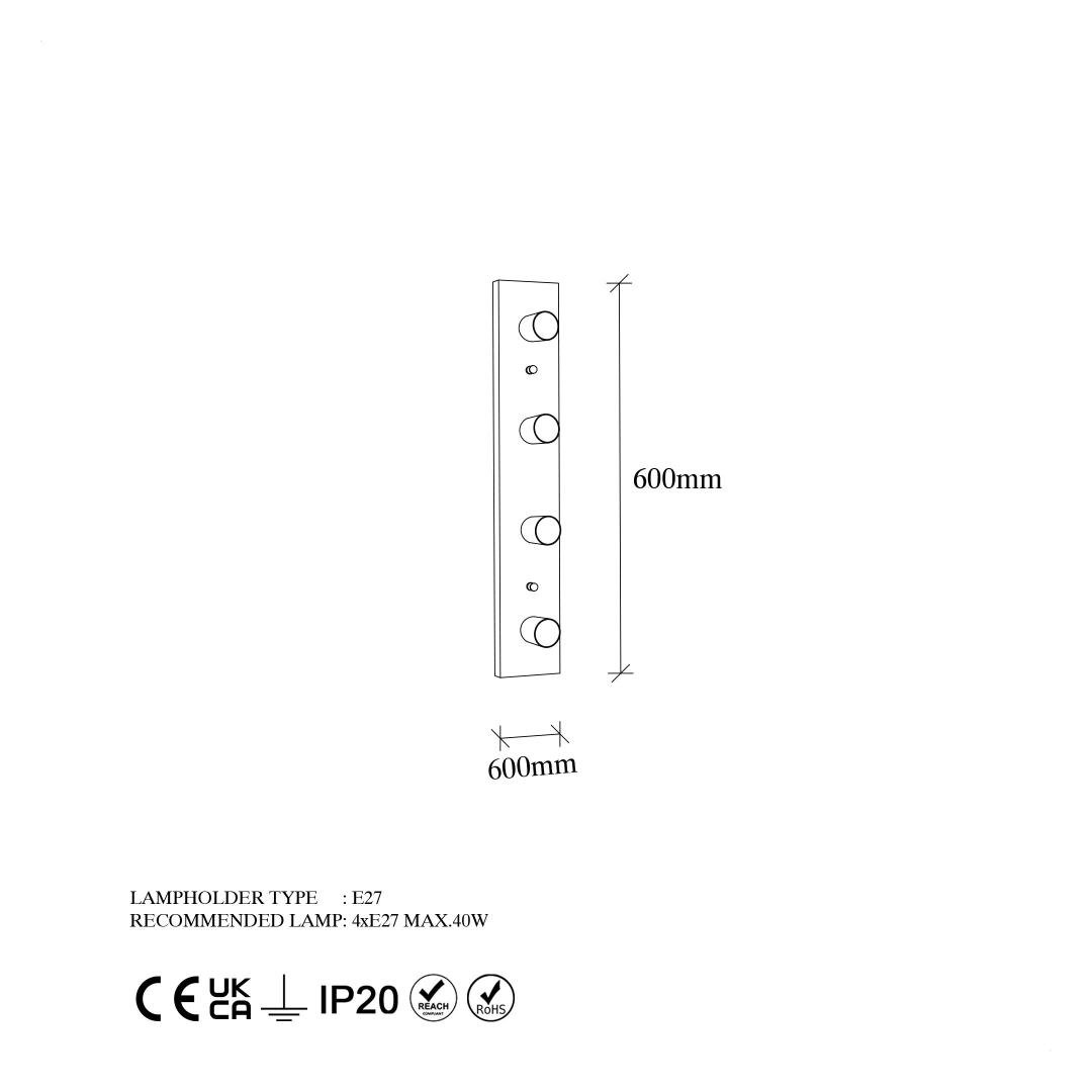 - Socket Type: 4 x E27 Max 40 W