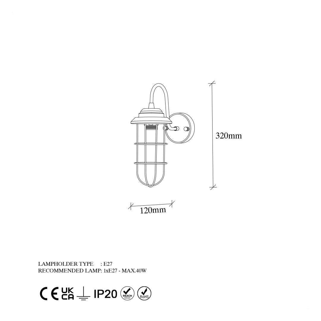 Not only does our Metal Body Wall Lamp elevate the aesthetics of your space, but it also provides practical lighting solutions. The metal cap ensures durability and longevity, while the E27 socket type allows for easy installation of bulbs up to 40W. Its IP20 rating ensures safe usage indoors.