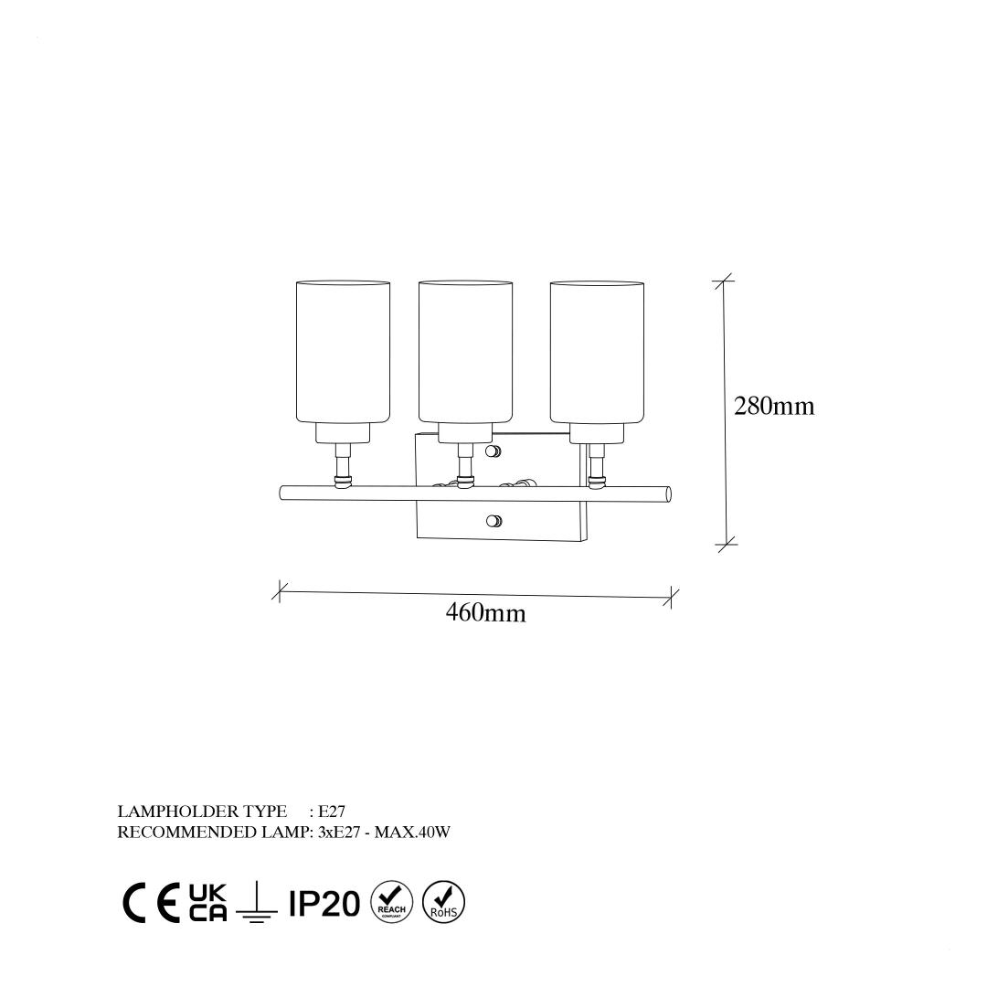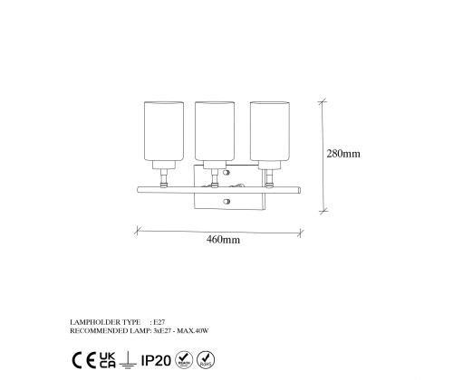 Socket Type: 3 x E 27 Max 40 W