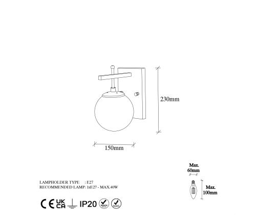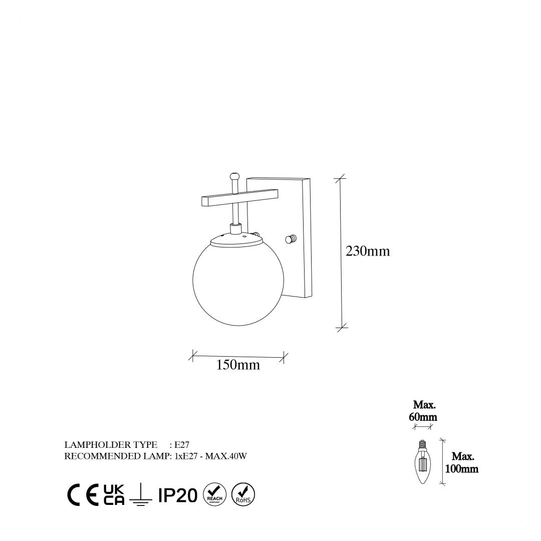 Featuring a socket type of E14 Max 40 W, our Wall Lamp provides ample lighting to brighten up your space. Its IP20 rating ensures protection against dust and small objects, making it suitable for indoor use. The lamp's size of 15 x 20 x 15 cm and base plate size of 12 x 20 x 2 cm make it a perfect fit for any wall, allowing you to effortlessly transform any room into a cozy and inviting space.