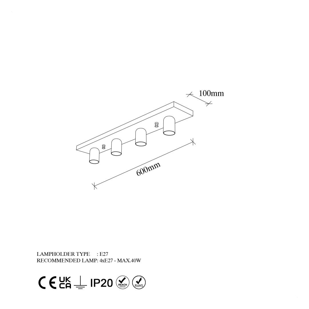 - Socket Type: 4 x E27 Max 40 W, providing ample lighting