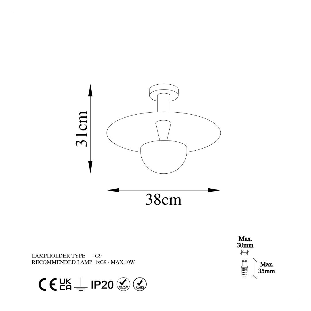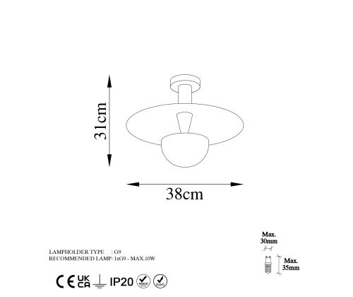 The chandelier comes with a metal cap, base plate, and socket type 1 x G9 Max 8W, making it easy to install and set up in your home. The IP20 rating ensures that this piece is safe to use in any room of your house.