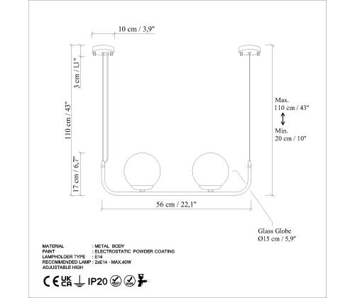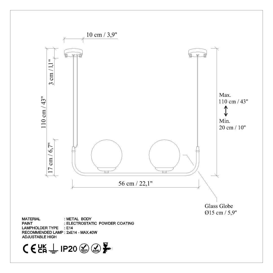 The captivating design of this chandelier will mesmerize you and your guests. The two E14 sockets allow for a maximum of 40W bulbs, creating a warm and inviting glow. The durable metal body ensures longevity and durability, making this chandelier a timeless addition to your home.