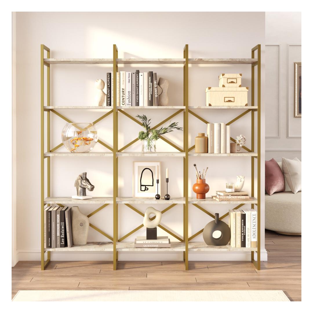 Transformeeri oma ruum elegantselt ja funktsionaalseltTutvustame meie uimastavat raamaturiiulit, mis muudab revolutsiooniliselt teie raamatute, sisustuse ja hinnatud asjade väljapaneku ja organiseerimise. See ülima hoole ja tähelepanelikkusega valmistatud raamaturiiul on loodud nii, et see annab igasse ruumi rafineeritud välimuse, pakkudes samal ajal rohkelt hoiuruumi.Võrratu vastupidavus ja stiilSee raamaturiiul on valmistatud 100% melamiiniga kaetud puitlaastplaadist, mis on ehitatud kestma. 18 mm paksus tagab erakordse tugevuse, mis võimaldab teil oma raamatute kollektsiooni kindlalt välja panna, ilma et peaksite muretsema vajumise või paindumise pärast. Elegantne metallraam lisab moodsat puudutust, samas kui valge marmori ja kuldse värvi kombinatsioon õhkab elegantsi ja luksust. Lõputud võimalused organiseerimiseksTänu arvukatele riiulitele pakub see raamaturiiul lõputuid võimalusi raamatute, pildiraamide, taimede ja muu korraldamiseks. Olenemata sellest, kas eelistate oma esemeid korraldada värvi, suuruse või teema järgi, pakub see raamaturiiul täiuslikku platvormi oma unikaalse stiili ja isiksuse tutvustamiseks. Looge igas ruumis fookuspunktSelle raamaturiiuli laius on 170 cm, kõrgus 175 cm ja sügavus 30 cm ning see on loodud selleks, et anda endast märku. Selle muljetavaldav suurus ja pilkupüüdev disain muudavad selle ideaalseks fookuspunktiks teie elutuppa, magamistuppa või kodukontorisse. Las see raamaturiiul saab keskpunktiks, mis tõstab teie ruumi uuele tasemele. Tehnilised üksikasjad:Toote tüüp: Riiul, mis on valmistatud puidust ja värvitud, kuid ei sisalda muid seadmeid..: .Materjal: Materjal: Materjal: Materjal: Materjal: Materjal: Materjal: Materjal: materjal: 100% melamiiniga kaetud puitlaastplaatPaksus: 18 mmRaam: MetallMõõdud: Laius: 170 cm, kõrgus: 175 cm, sügavus: 30 cm.Riiulid: ArvukadVärv: Valge marmor ja kuld Värv: White Marble Gold