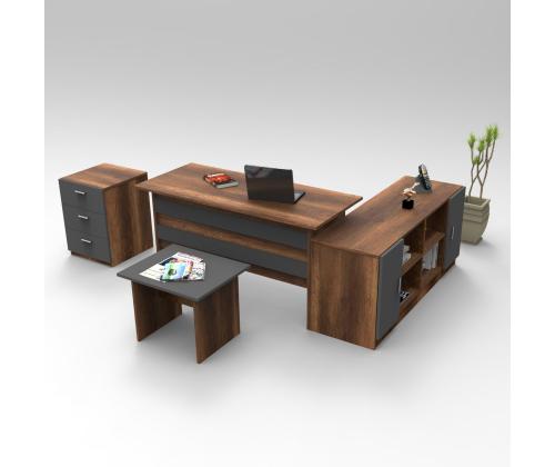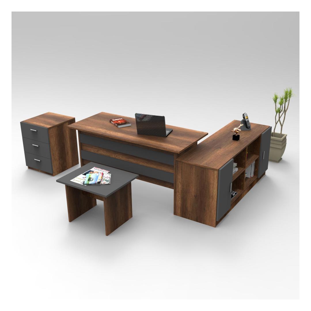 Made with 18 mm thick melamine coated particle board, our Office Furniture Set is built to withstand the test of time. The sturdy construction ensures stability and longevity, allowing you to enjoy your furniture for years to come. The walnut and anthracite color combination adds a touch of sophistication and elegance to any office decor.