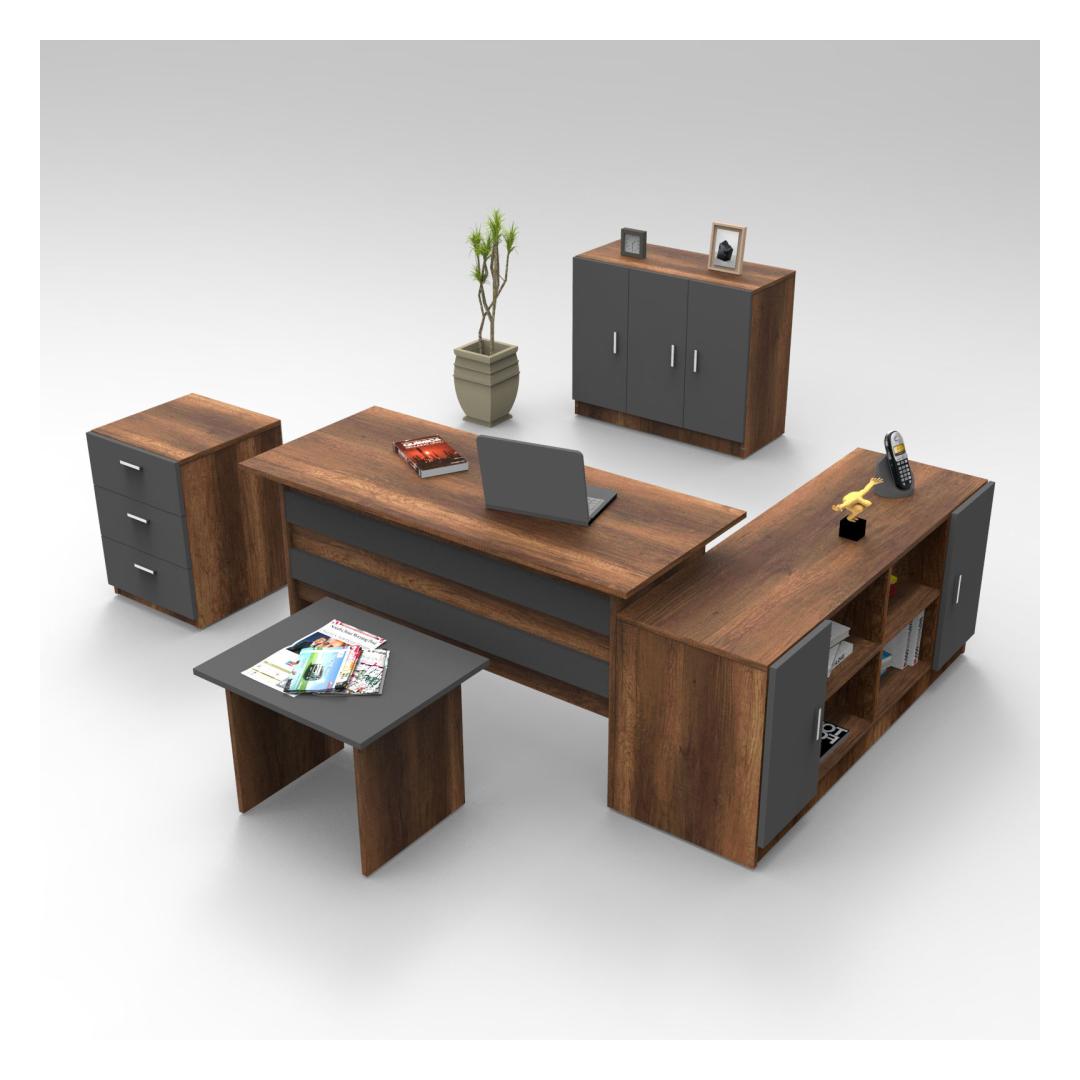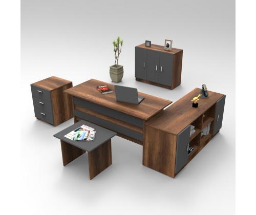 Crafted from 100% melamine coated particle board, this furniture set is built to last. The 18 mm thickness ensures exceptional sturdiness and stability, allowing you to work with confidence. The walnut and anthracite colors add a touch of elegance and sophistication to your office space.