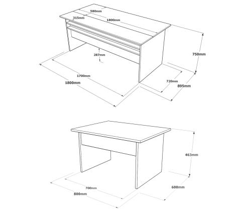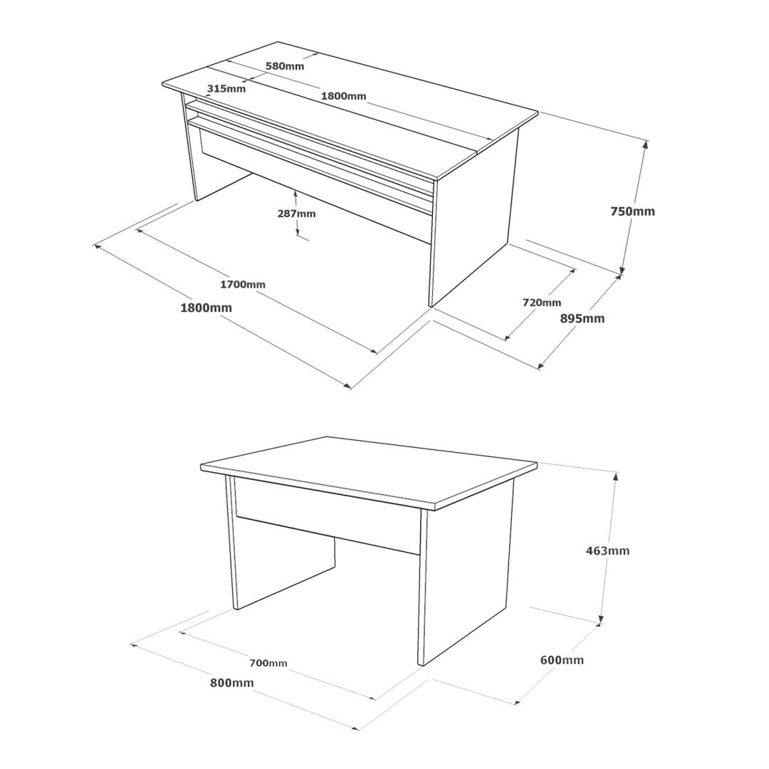 - Study Desk Dimensions: Width: 180cm, Height: 75cm, Depth: 89.5cm