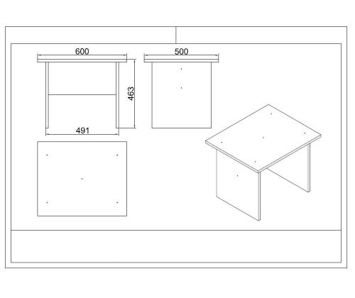 - Table: Width: 60 cm, Height: 50 cm, Depth: 46.3 cm (1 Piece)