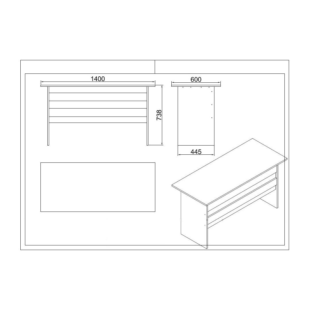- Desk: Width: 140 cm Height: 60 cm Depth: 73.8 cm (1 Piece)