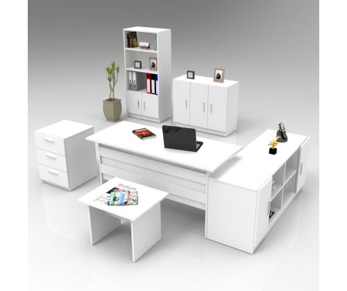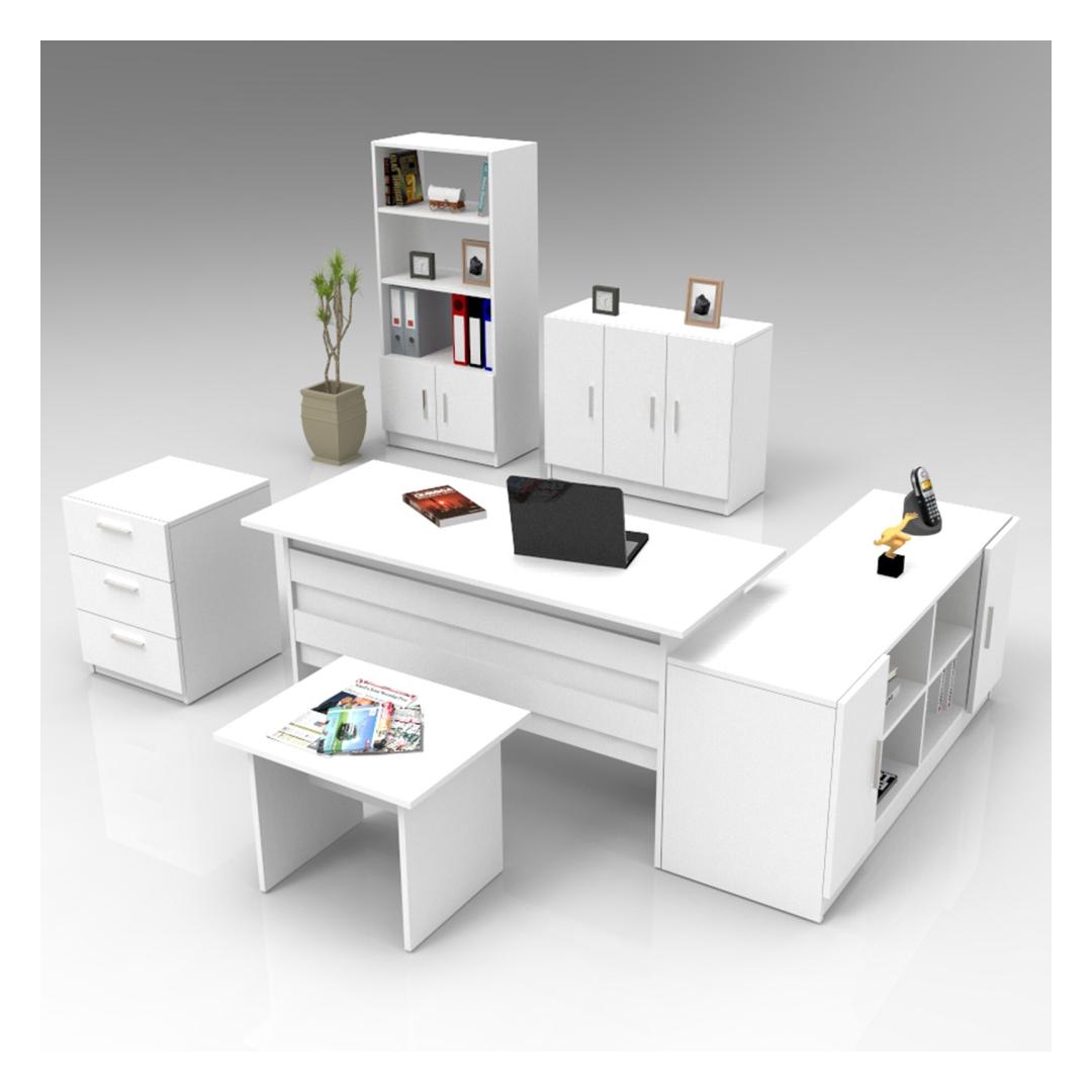 The set includes a spacious desk, a table, a drawer, a bookshelf, a cupboard, and a sideboard, providing ample storage and workspace. Keep your documents, books, and office supplies neatly organized and within reach, allowing you to work efficiently and effectively.