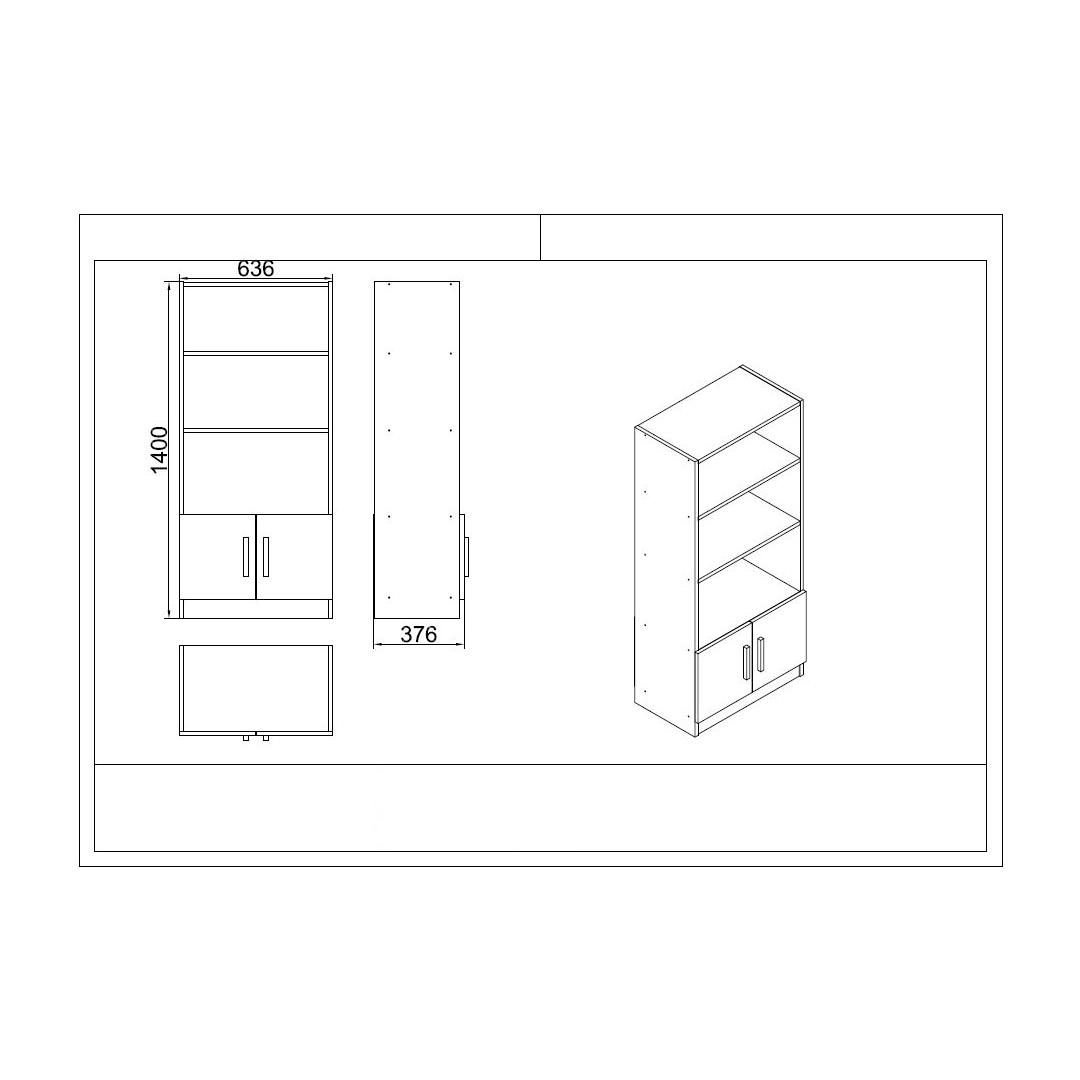 - Bookshelf: Width: 63.6 cm Height: 37.6 cm Depth: 140 cm (1 Piece)