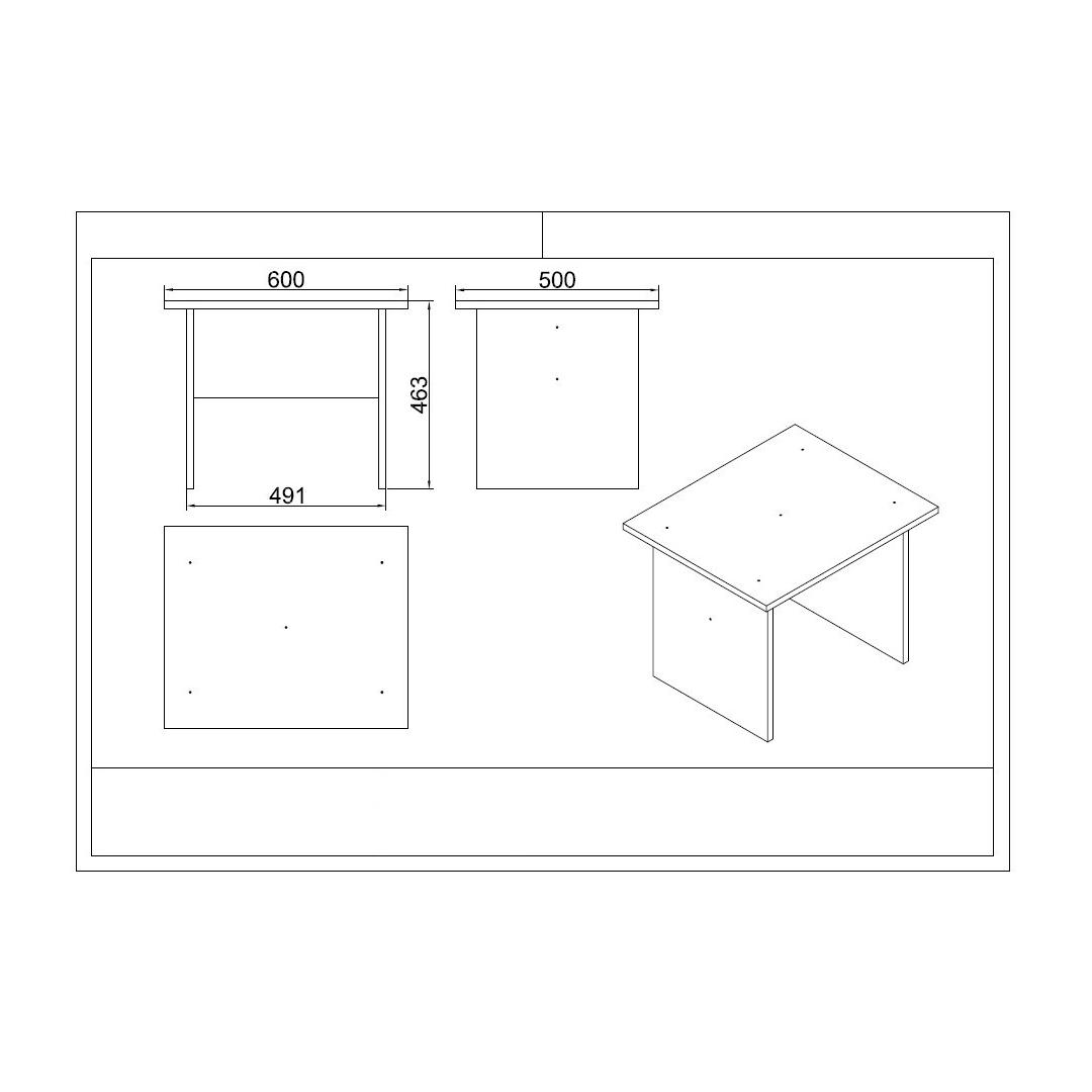 - Table: Width: 60 cm, Height: 50 cm, Depth: 46.3 cm (1 Piece)