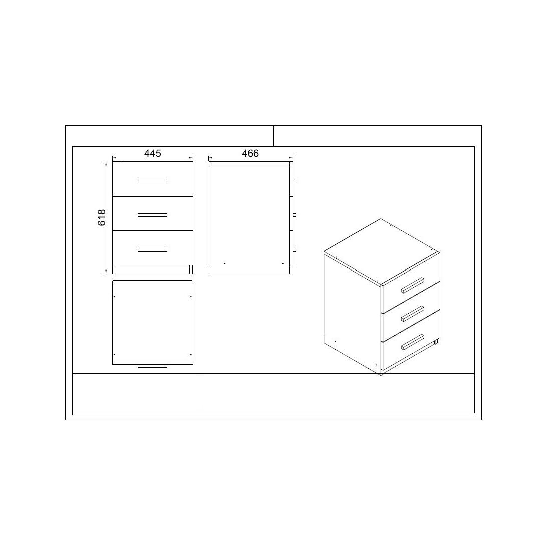 - Drawer: Width: 44.5 cm, Height: 46.6 cm, Depth: 61.8 cm (1 Piece)