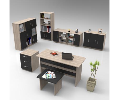 The combination of Oak and Black colors gives this set a contemporary look that will complement any office decor. The 18mm thickness of the melamine coated particle board ensures long-lasting durability, making this set a practical investment for your workspace.