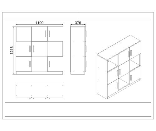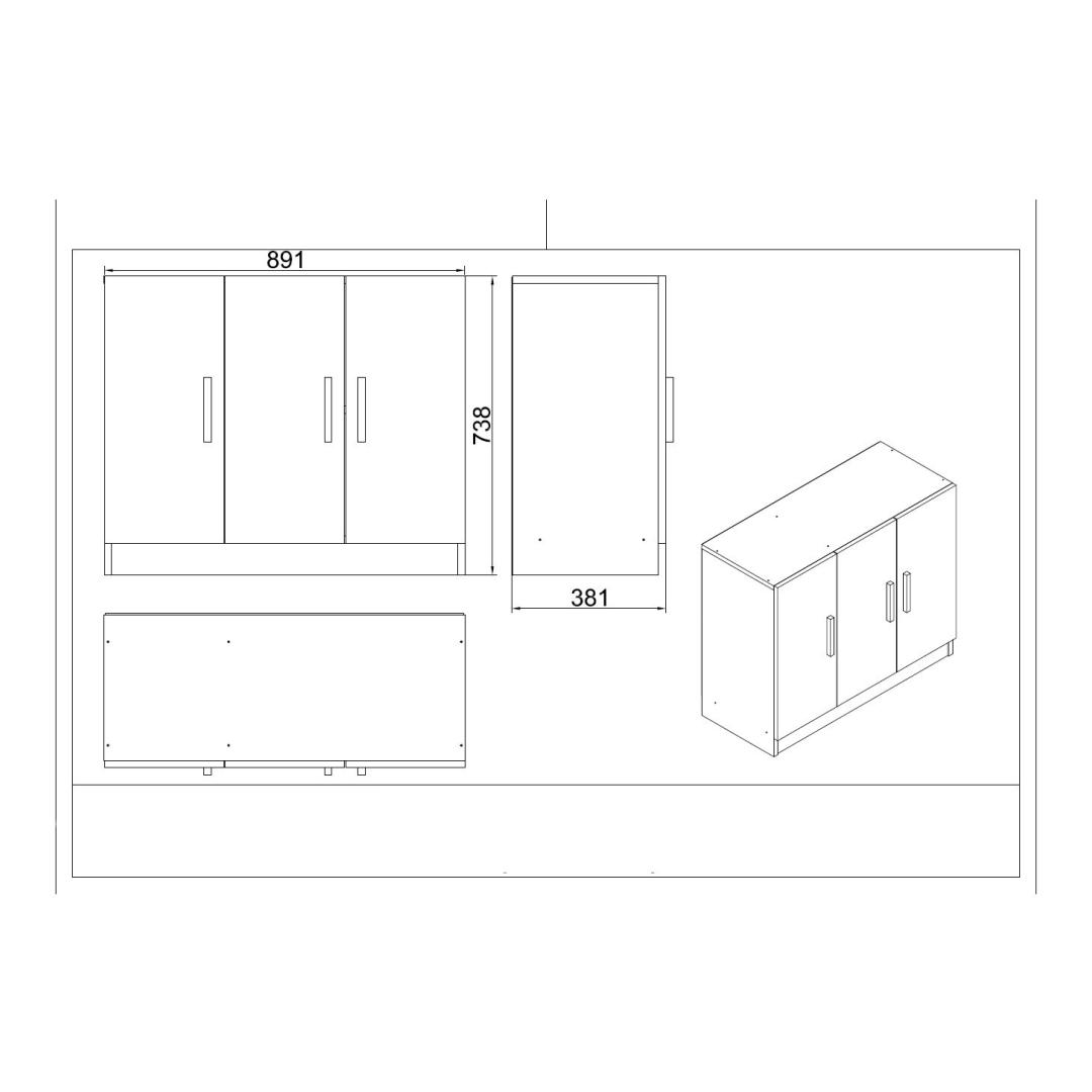 - Cupboard: Width: 89.1 cm, Height: 38.1 cm, Depth: 73.8 cm (1 Piece)
