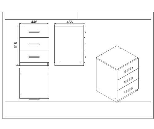 - Drawer: Width: 44.5 cm, Height: 46.6 cm, Depth: 61.8 cm (1 Piece)