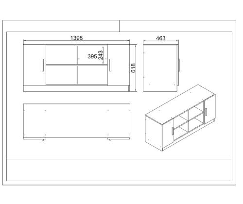 - Sideboard: Width: 139.8 cm, Height: 4.63 cm, Depth: 6.18 cm (1 Piece)