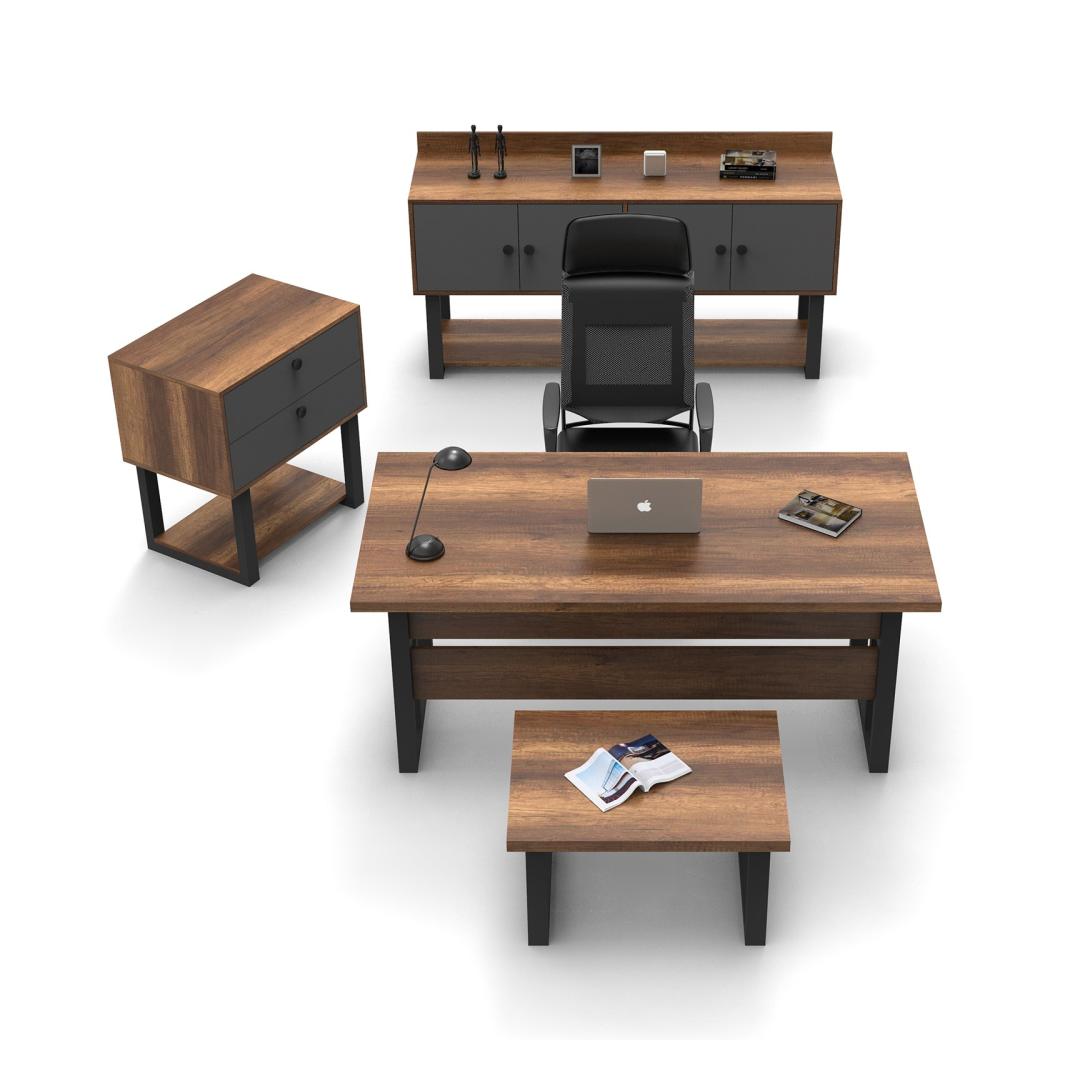 With a spacious desk, table, drawer, and sideboard, this set provides ample storage and workspace for all your office essentials. Keep your documents, stationery, and personal items neatly organized and within reach, allowing you to focus on what truly matters - your work.