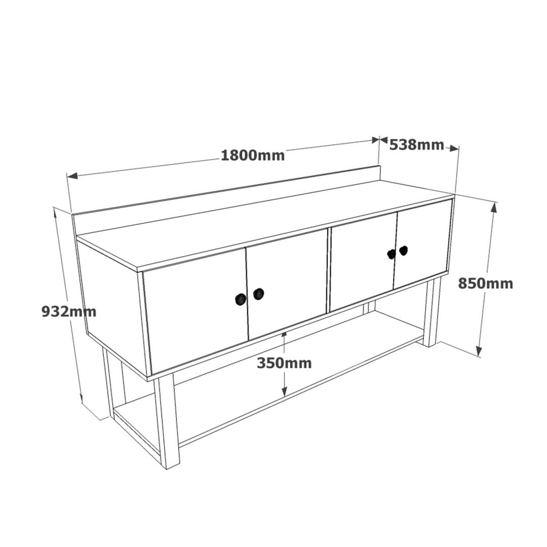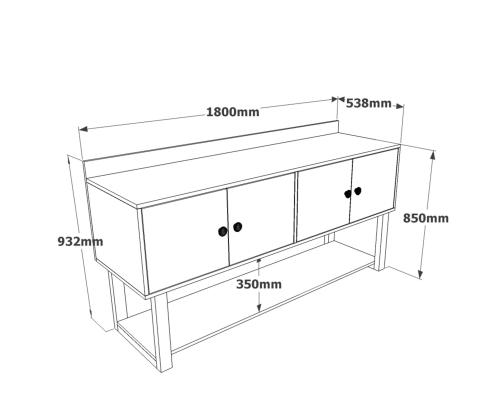 - Sideboard: Width: 180 cm Height: 53.8 cm Depth: 93.2 cm