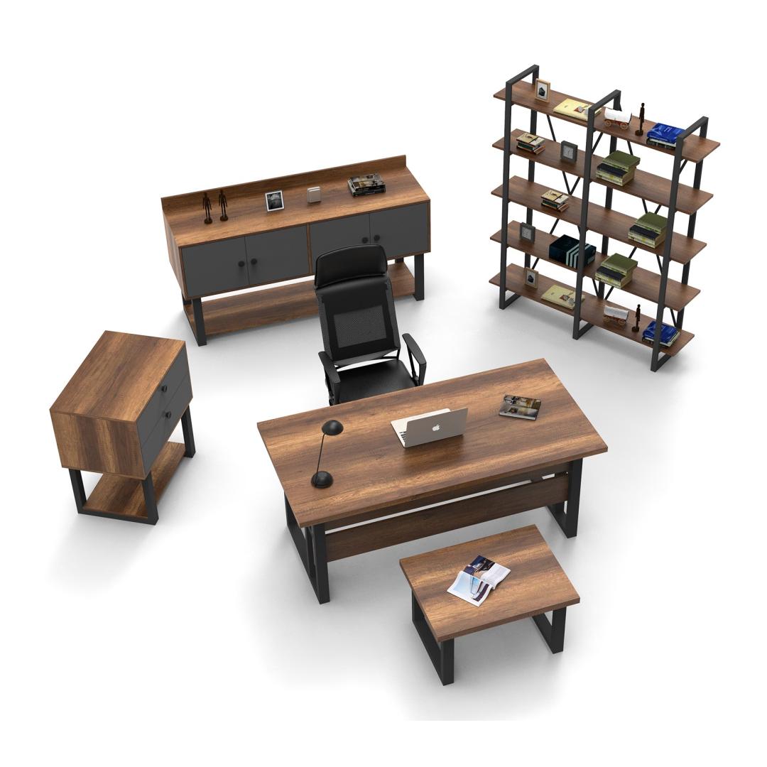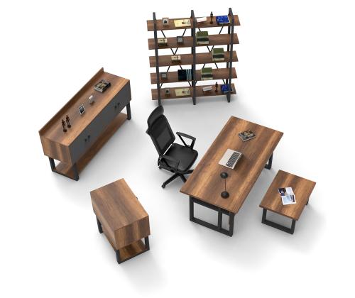 Featuring a spacious desk, table, drawer, sideboard, and bookshelf, this set provides ample storage space for all your office essentials. Say goodbye to cluttered desks and disorganized files - our furniture set will help you stay organized and efficient.