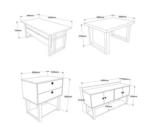 - Sideboard dimensions: Width: 180cm, Height: 53.8cm, Depth: 93.2cm