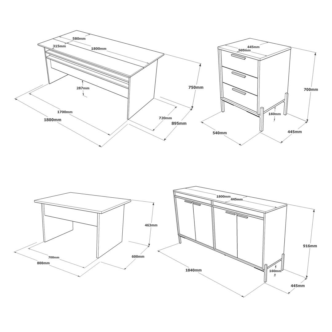 - Desk: Width: 180 cm, Height: 89.5 cm, Depth: 75 cm
