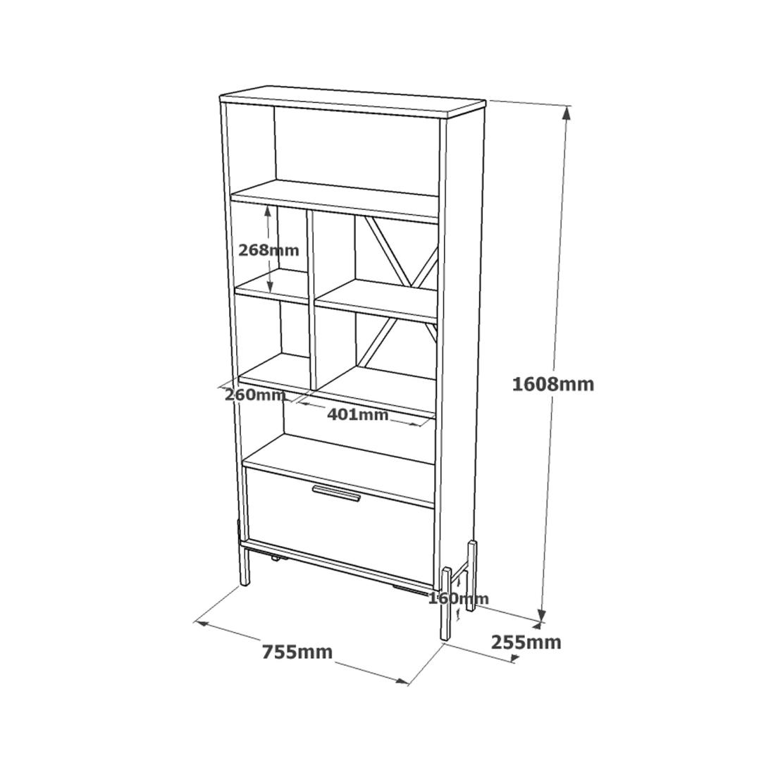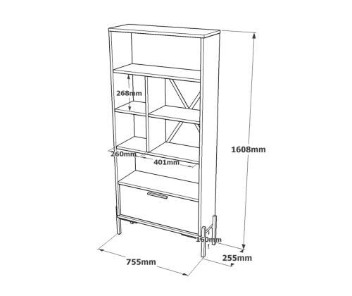 - Bookshelf: Width: 75.5 cm, Height: 25.5 cm, Depth: 160.8 cm